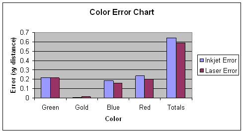 Summary: The goal of this experiment was to create colors with defined xy chromaticity values, to print out these colors with a chosen inkjet and a chosen laser printer, and to compare the xy chromaticity values for the printed sheets with the originals.
