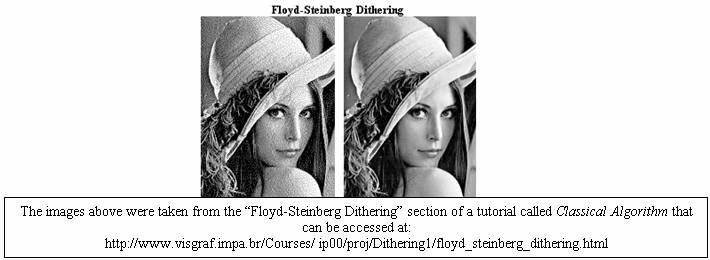 There are many different techniques used for dithering such as random dithering, ordered dithering, and Floyd-Steinberg dithering. In random dithering, you simply chose a random number between 1 and 256 for each pixel in the image. If the random value is greater than the grayscale pixel value, then that pixel becomes white and if not, that pixel becomes black. While this dithering process is simple, it creates lots of white noise.