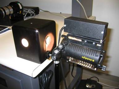 Uniform illumination was necessary to measure the light falloff of the two cameras. To this end, we used an integrating sphere to provide uniform illumination. The integrating sphere diffused the light from a tungsten lamp and the pictures were taken at the output port of the integrating sphere. Care was taken to keep stray light to a minimum.