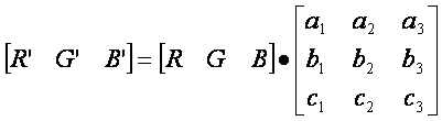 In typical implementations, RGB pixel values are transformed with a set of constants, resulting in a new colour balanced set of RGB values.