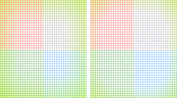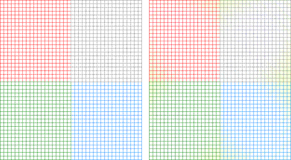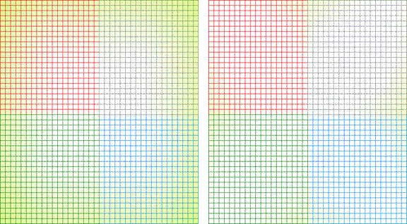 Figure 10: Left: Localized Gray World Border Artifacts, Right: Localized Gray World With Reduced Zone Size and Reduced Border Artifacts