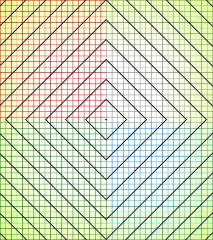 algorithm uses the zone information to calculate the colour