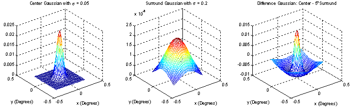 where σcen is the standard deviation of the Gaussian representing the receptive field center and σsur is the standard deviation of the Gaussian representing the surround.