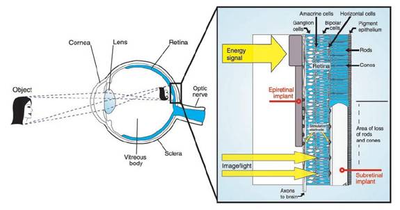 [11] Zrenner, Eberhart. “Will retinal implants restore vision?” Science. 295: 1022-1025. (2002)