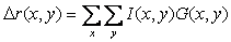 where G(x,y) represents the receptive field and I(x,y) represents the stimulus (image) intensity at position (x,y). Thus finding the response of a ganglion cell (the change in firing rate from baseline) to a contrast pattern involves taking a weighted sum of the intensity values, where the weighting is determined by the receptive field of the ganglion cell.