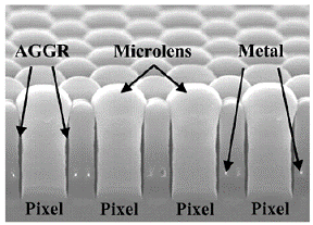 Methods - Air Gaps This technique to confine the incident light relies on TIR at the boundary between the ILD, in this case silicon dioxide, and an air void that is formed at the edge of the active pixel area. This method has been recently demonstrated in literature [3-6] by engineers at the Taiwan Semiconductor Manufacturing Company (TSMC), who found that it could significantly increase light transmission and reduce crosstalk. A SEM image of one of their test structures is shown in Figure 5(a) and an illustration of the air gap concept is shown in Figure 5(b).
