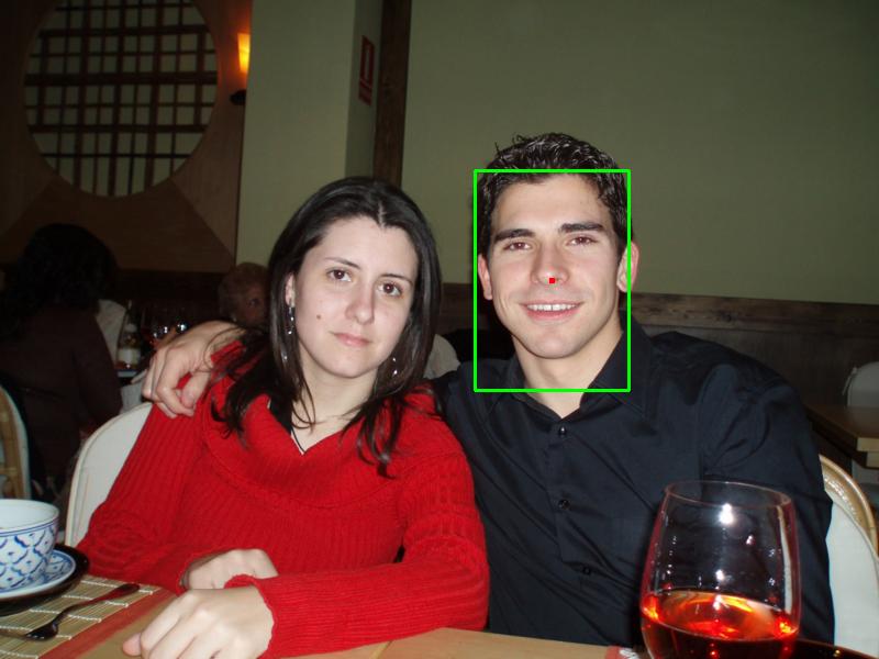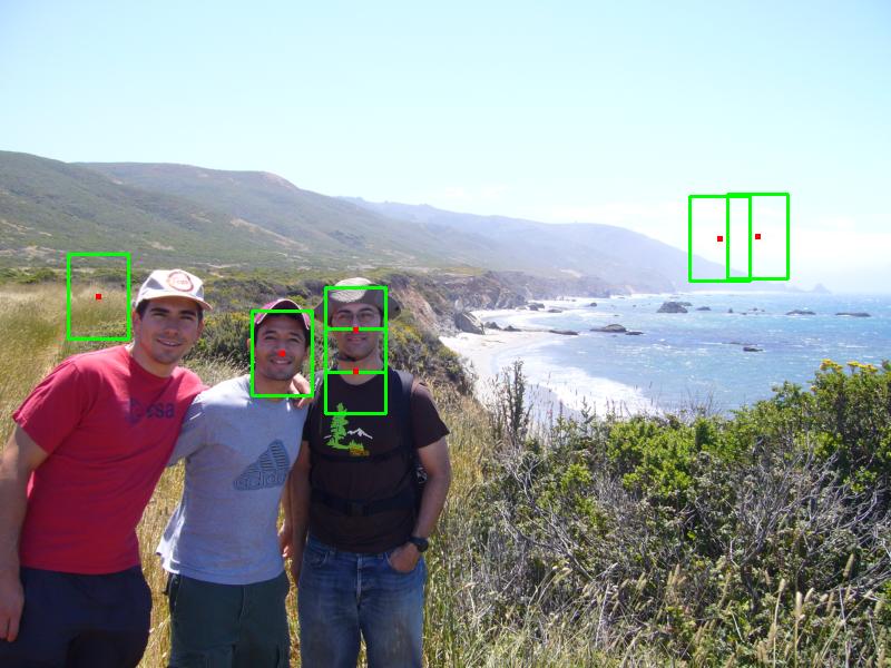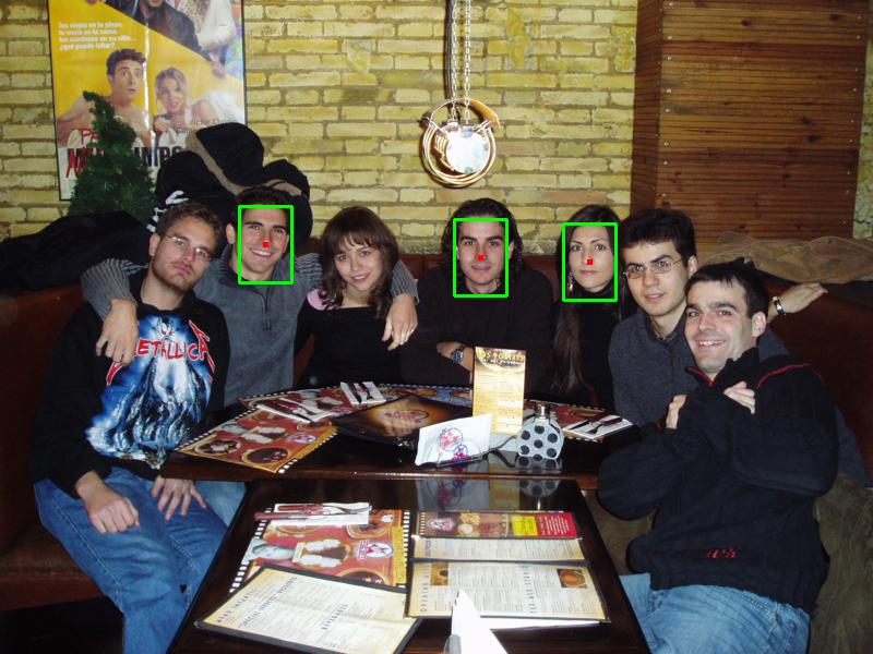 presence of faces, so the boxes are in red. The second image shows which points are
