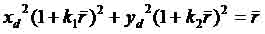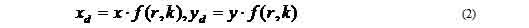 the relationship between (xd,yd) and (x,y) becomes
