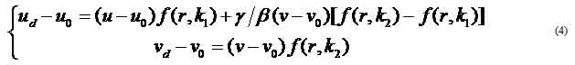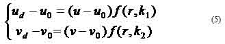 Where the distortion function f(r,k) in (3) can be chosen to be, though not restricted to, any of the functions in Table II. When k1 = k2 = k, the geometric distortion reduces to the radial distortion in equation (2). From (3), the relationship between (ud,vd) and (u,v) becomes