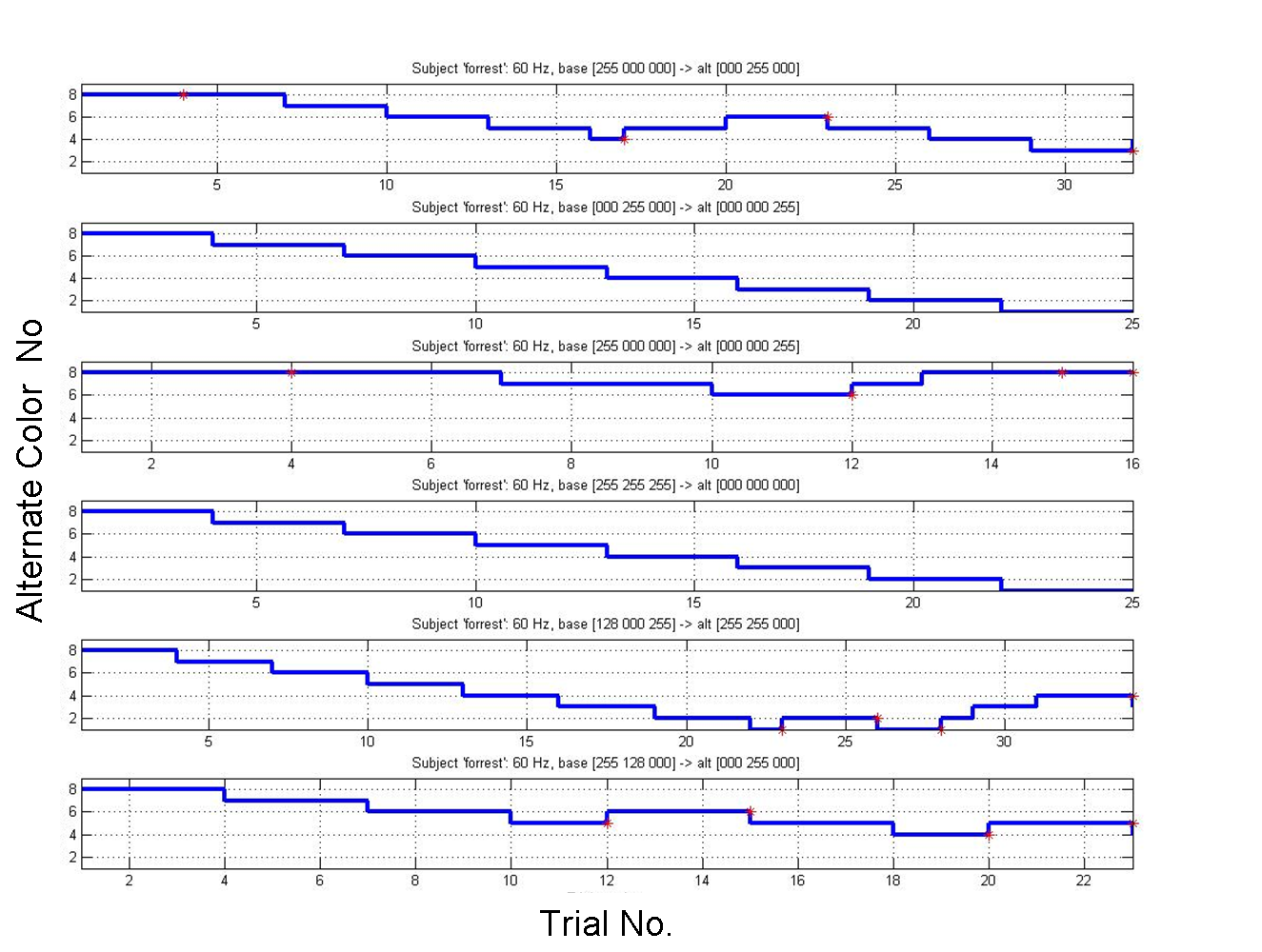 pair ends when either the subject has undergone four reversals, or has reached