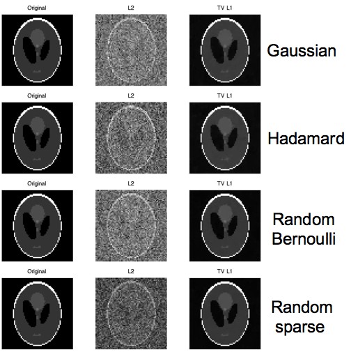 We performed simulations of compressive sensing, first in an