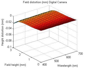 In summary the results of the field distortion are inconclusive. While the geometry of the lens system for the Ball CFPA indicated that the results should be zero field distortion, data from Zemax shows that there is in fact distortion on the same order as the Digital Camera. These results do not match the data used from CodeV. Futher investigation into Zemax and CodeV will be required.