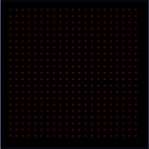 These optical images were simulated using ISET with the PSF data. Each pixel has the PSF applied and simulations take quite a long time. Each image only contains a scene with a single wavelength sampled. It would be ideal for optical image simulations of photon images. For the scope of this project only the arrayed dots at D65 were used.