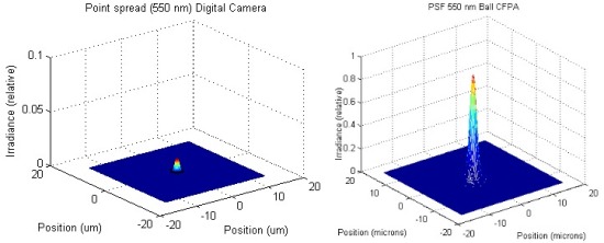 In summary the results show that the PSF of Ball CFPA is far superior to that of the digital camera.