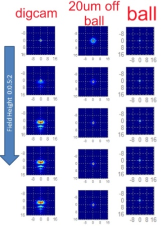 The PSF comparison images below show the BallCFPA with a 20um curvature misalignment compared to the digital camera psf.