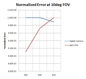 In summary the Relative Illumination or Fall-off of the Ball CFPA is much better than that of the Digital Camera or PCX. This means the Ball CFPA is better suited for stable image capture illumination across the FPA.