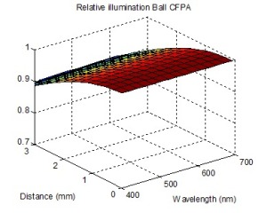 The ball CFPA scenes show components on the psf as well as the illumination fall-off. The fall-off occurs much further towards the edge of the image, which is consistent with the relative illumination analysis. The images are quite difficult to see therefore an error analysis was done to create a better quantitative analysis. These datas are stored in the data files in the appendix.