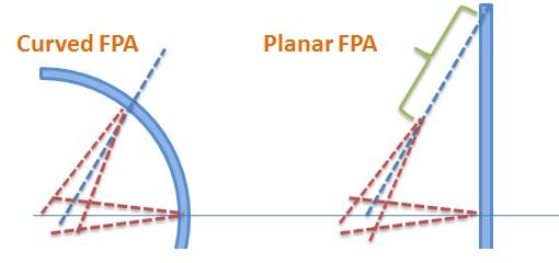 One interesting question that has not be address previously is how much effect does the accuracy of the CFPA curvature effect the advantages shown for using the CFPA (improved relative illumination, improved PSF). This is not only an interesting question but important since the quality of the fabrication technique has not been perfected yet. While still in development it would interesting to know how much optimization of the curvature is needed to take advantage of the qualities we have demonstrated.