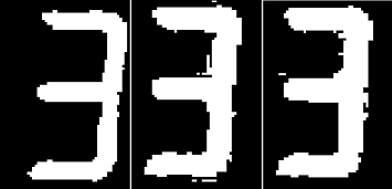 EyeLab: An Automated LED display analyzerConclusionsQuantitative ExaminationBefore examining the results more closely, one should note that the “Test Data” and the “Real Data” are not “testing” exactly the same thing. The “Test Data” shows digits from different camera angles, while the “Real Data” shows digits from the same angle. Because the “Test Data” is computer rendered, if the camera angle were fixed, the image will look exactly the same at each frame of rendered video. This is not true of the “Real Data,” where fluctuations in the light level of each segment of each digit of the test equipment (sometimes exacerbated by the image binarization algorithm) can lead to one digit looking different in each frame of video. This is shown below in Figure 18. ![]() Figure 18 - Three examples of "three" pulled from the "Real Data." Intuitively, and as we can see in the above figure, changes in light level do not cause as much variability as changes in camera angle. Thus, one would expect the MSE in identifying the “Test Data” to be an upper bound to the error observed in a “real world” setting. This is confirmed upon closer examination of the confusion diagrams (Figures 12 and 13). One will notice that with the exception of “eight” with cross-correlation, all of the digit misidentifications occur near the ‘‘beginning’’ of each of the one hundred ‘‘runs’’ of a particular digit. Recall that when the test data was created, The confusion diagrams also provide some insight as to ‘‘why’’ certain digits are identified incorrectly. With “Smart-strokes,” many digits are incorrectly identified as a seven. This intuitively makes sense. Seven has three illuminated segments: the top segment and the two right segments. Many digits also have the top and the bottom-right segment illuminated. If changing the camera angle were to make only some segments of each digit appear to not be illuminated, there is a greater chance that these two will remain illuminated because they are more likely to be illuminated in the first place. Note, also, that many ‘‘eights’’ are mis-identified as a smattering of other digits. This also makes sense — ‘‘eight’’ illuminates all the segments, thus turning one or two off at random can readily turn it into other digits. This also suggests why, in the cross-correlation method, that eight is the most readily misidentified digit. With its abundance of illumination, it looks a lot like six and zero. It’s no surprise that the DCTs are similar and thus it is most commonly misidentified as these other digits. With all of this said, the Neural Network method performs better by an order of magnitude MSE and run-time than the other algorithms. This is to suggest that, despite my best efforts, it is more robust to changes in camera angle (i.e. translation, rotation, skewing, scale, etc.) than the other methods. Remember, however, that it uses significantly more “training” images (300!) than the cross-correlation method (which only uses around 2-4 of each digit) or the Smart-strokes method (which needs no training!). Since this cannot be used (easily) with “Real Data,” we conclude that the “best” method to use is the cross-correlation method, which offers great performance at reasonable compute times. Finally, in terms of both performance and run-time, all three algorithms can agree on one thing: downsampling leads to decreased performance and increased runtime. Interestingly, the performance is not that much worse at 4x downsampling, suggesting that these algorithms could be implemented with a webcam in real time! Qualitative ObservationsFigures 12-15 look very similar to our “expected” waveform in Figure 7b, except for two main differences: quantization artifacts and random “spikes” throughout the waveform. The quantization artifacts are actually due to the sampling rate of the multimeter (about 2 Hz). Our video camera, at 30 FPS, grossly oversamples the multimeter! The “spiking” artifacts, at first, appear to be errors in digit identification. While this is true in some of the cases, in many cases, this is in fact an error from the multimeter! Take the first major “spike” around five seconds. Both algorithms in fact correctly identify this, shown in Figure 19, as 98.08 millivolts. ![]() Figure 19 - Mistake in multimeter output. That said, the two methods don’t always have the same “spikes” so we know that there are definitely some errors being made. Specific to the “Smart-strokes” algorithm, we notice a fair bit of oscillation around 30 millivolts–sometimes the “three” is being identified as a “four,” and vice versa. This gets worse as the spatial sampling rate is reduced. Interestingly, cross-correlation appears to work better as sampling rate is reduced (contradicting the “Test Data” results) — Figure 15 looks very clean. Somehow, the “spiking” has been corrected for! Since 30 FPS is too much for monitoring most test equipment, we can use the advantage of oversampling to create a robust moving average of the data to “smooth out” the quantization and the spikes. Alternatively, the sampling rate could be reduced, or, we could take “bursts” of 30 FPS at predefined intervals. For example, if we want to read a voltage once every hour, we could automatically turn on the camera for ten seconds each hour and take a fairly long average for each hour’s single time point. Final WordsThus, we have demonstrated a system whereby test equipment can be monitored using an ordinary digital camera. With a minimum amount of training, the Cross-correlation algorithm can be used to identify the digits very rapidly and with high accuracy. If more speed is desired at the cost of accuracy, the “Smart-strokes” algorithm can be used. If we have more time to manually identify digits coming from the video, a robust feature extractor and Neural Network classifie