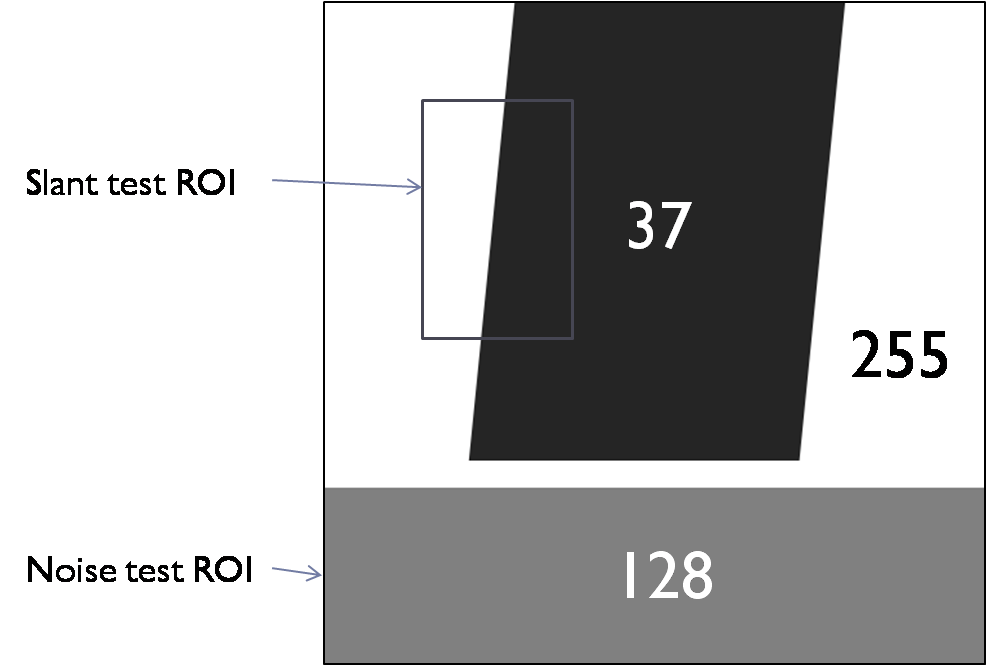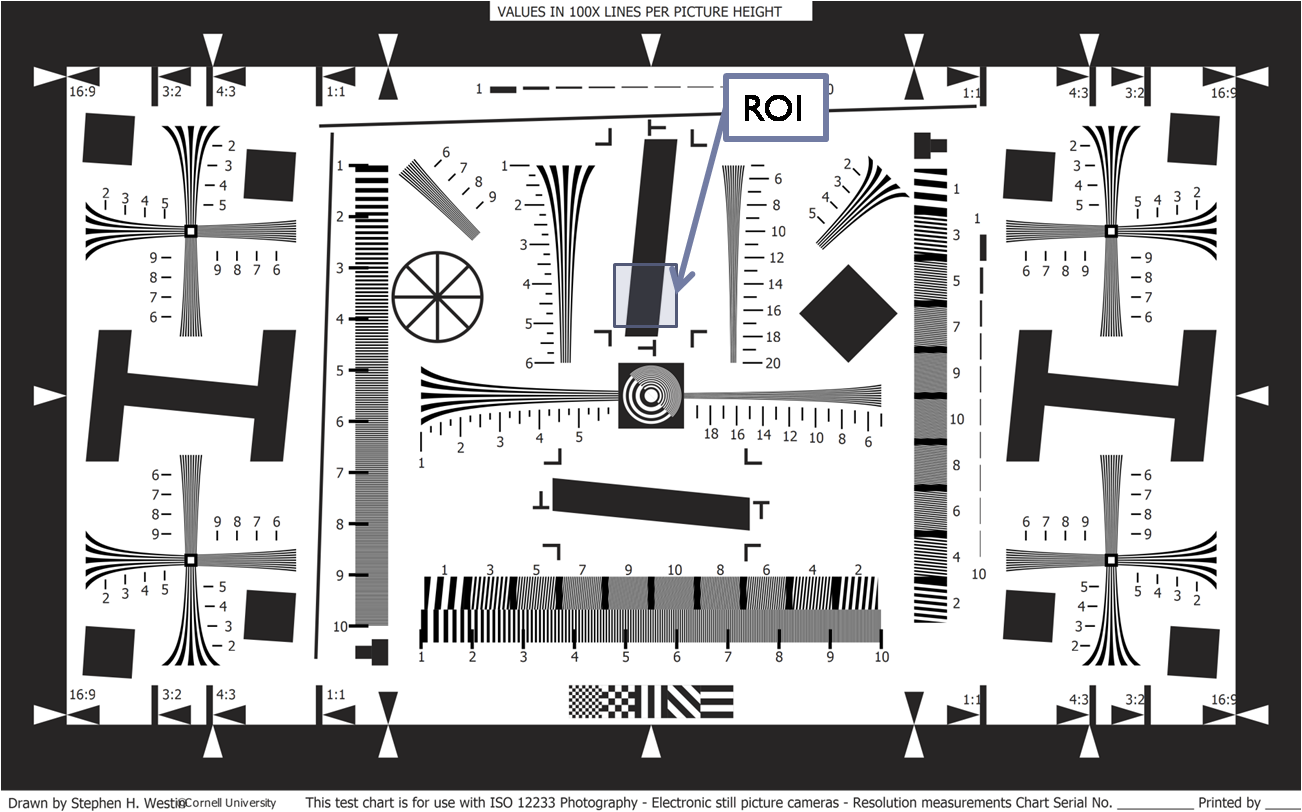Slant edge was selected as ROI from the ISO 12233 test chart as shown below[d]: