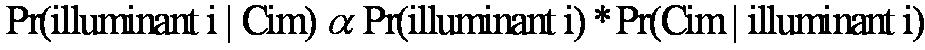 Now we want to find the illuminant i such that Pr( illuminant i | Cim ), where Cim represents the set of chroma in the image, is maximised.