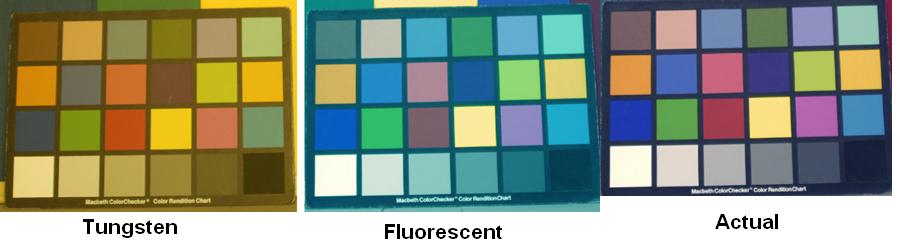 The image shown below(obtained from ImagEval website) of the Macbeth color checker under different illuminations provides an illustration of this fact.