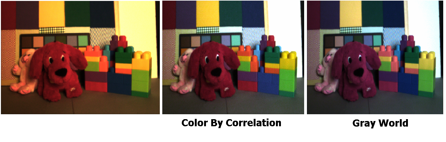The following figures show the results that were obtained when the Gray World and Color by Correlation algorithms were applied to real world images.
