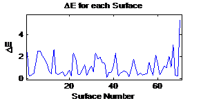 distance metric (2.7) in CIELAB across all 70 surfaces of the spectra. Figure 25