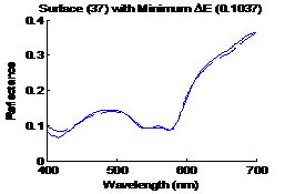 metric (0.1429) in CIELAB, the solid line sis the original spectrum and the