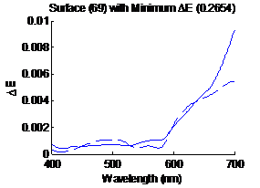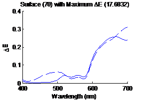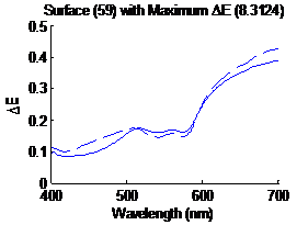 distance metric (0.39) in CIELAB across all 70 surfaces of the spectra. Figure 29