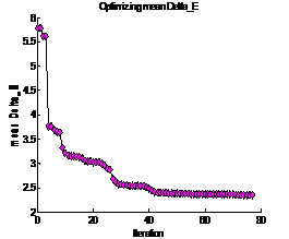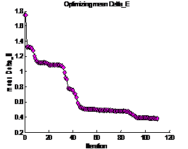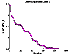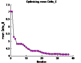 32: Mean distance metric in CIELAB versus the number of iterations of minimizing