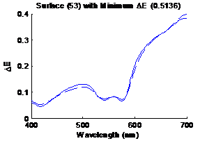 shows the surface having the smallest distance metric (0.5223 in CIELAB, the