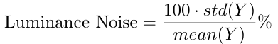 The luminance noise is calculated as a percentage of the standard deviation of the luminance over the mean luminance in the block.