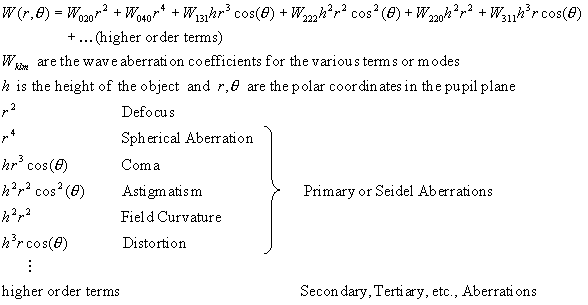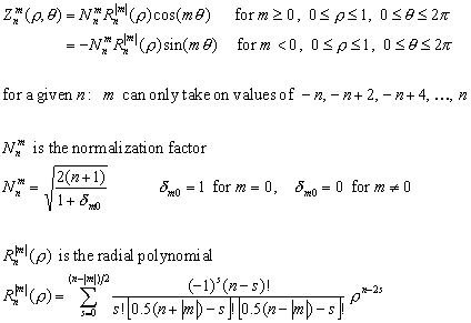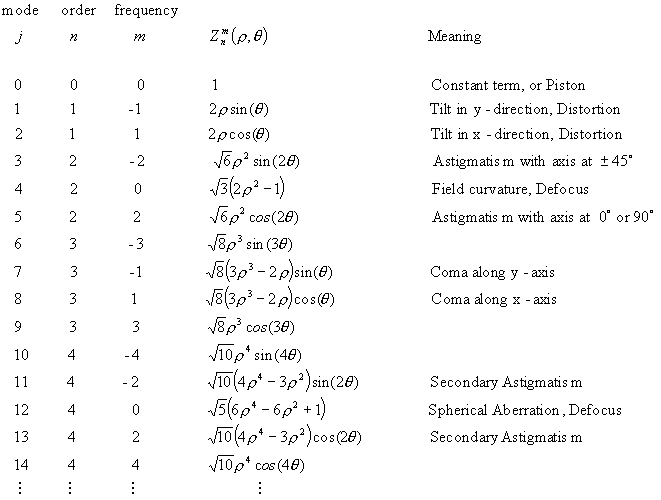 Comparison with the terms in equation (2) shows that the functional form of the traditional wave aberration terms or modes are represented in the various Zernike polynomials.