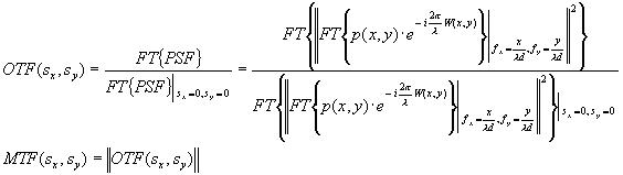 The Modulation Transfer Function is modulus of the Optical Transfer Function. The OTF and MTF are given by [4, 5]: