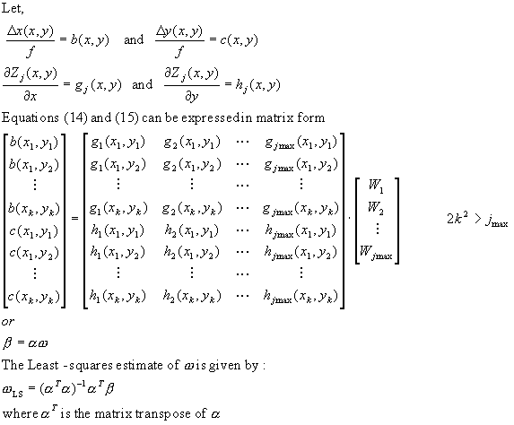 The wavefront at the lenslet array will be aberrated as shown in Figure 17. The lenslet array will convert the local sections of the wavefront into focused spots at the CCD. If the incident wavefront is a perfect plane then the focused spots will not be displaced from the optical axes of the various lenslets. An aberrated incident wavefront will produce a non-zero spot displacement. So for each lenslet there will be an x-displacement, Δx, and a y-displacement, Δy. The displacements divided by the focal length of the lenslet is equal to the local slope of the wavefront. The displacement data measured by the CCD can now be fit to a Zernike polynomial expansion where the expansion coefficients are determined using Least-squares estimation as outlined below [10].